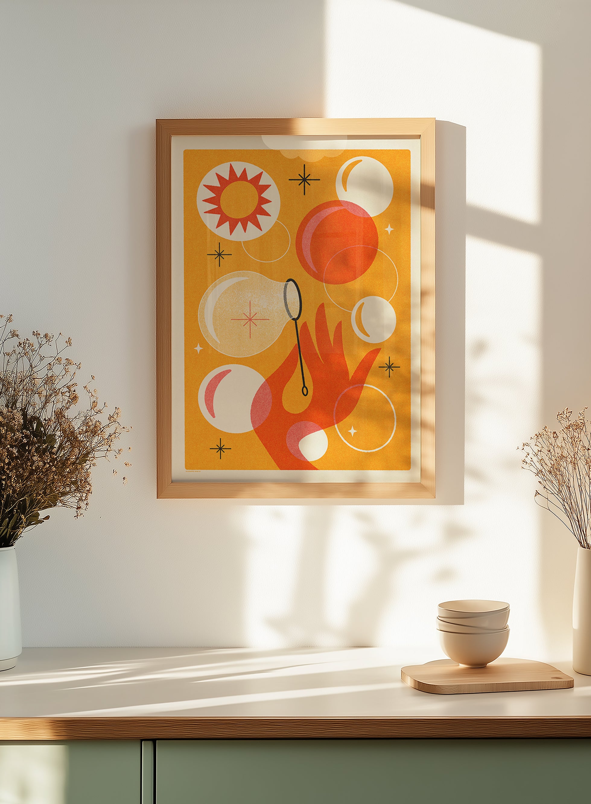 So Bubbles is here to add a little sunshine and brightness to any bedroom, playroom or family space. Available in sizes A4 to A1 there's a size to fit everyone.