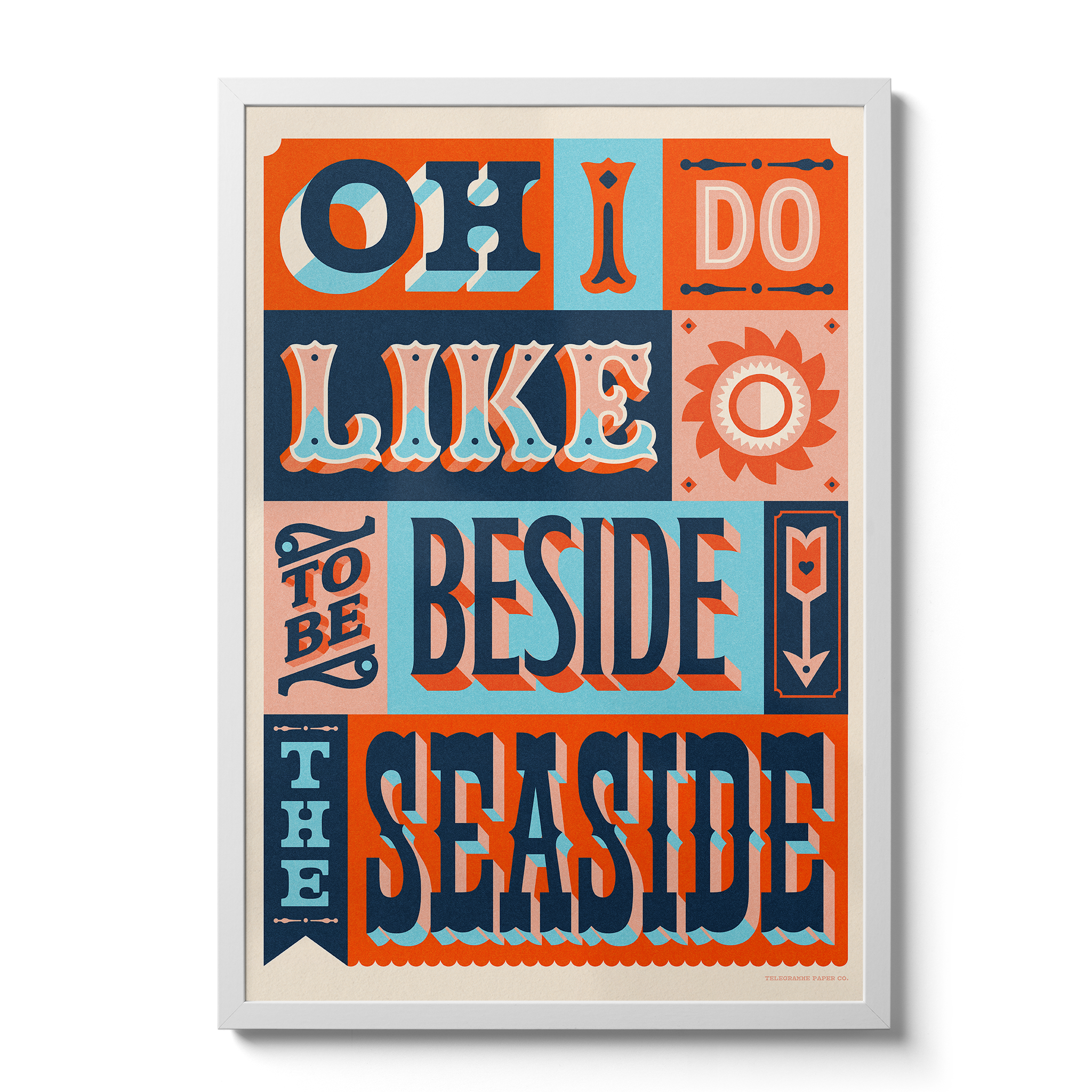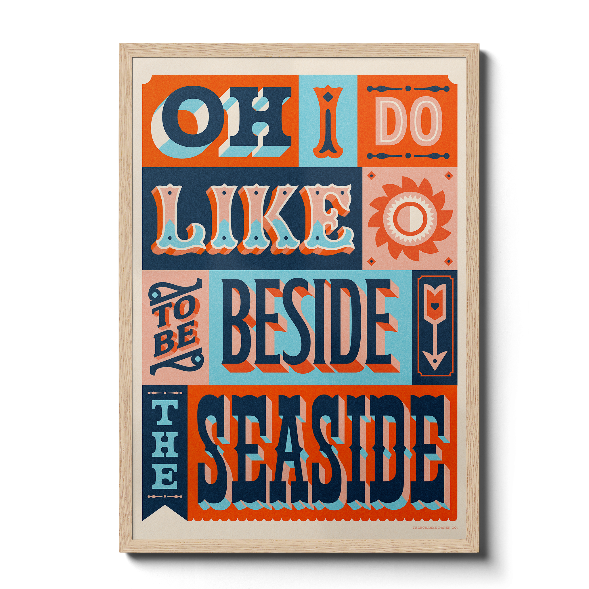 This week's print was a chance to work on some glorious typography. Taking it back to some original Telegramme style and our ever-growing love for hand-painted signage. We have vintage ride signs in our home, and living by the coast we are surrounded by inspiration when it comes to seaside signage and retro fairground design.