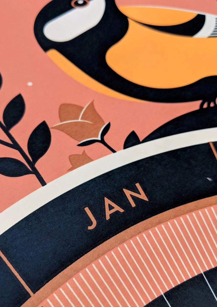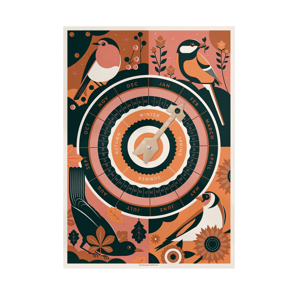 The year is split into weeks, months and seasons, portrayed by some of our favourite seasonal British garden birds - a Great Tit for Spring, Goldfinch for Summer, Blackbird for Autumn and our trusty Robin for Winter.