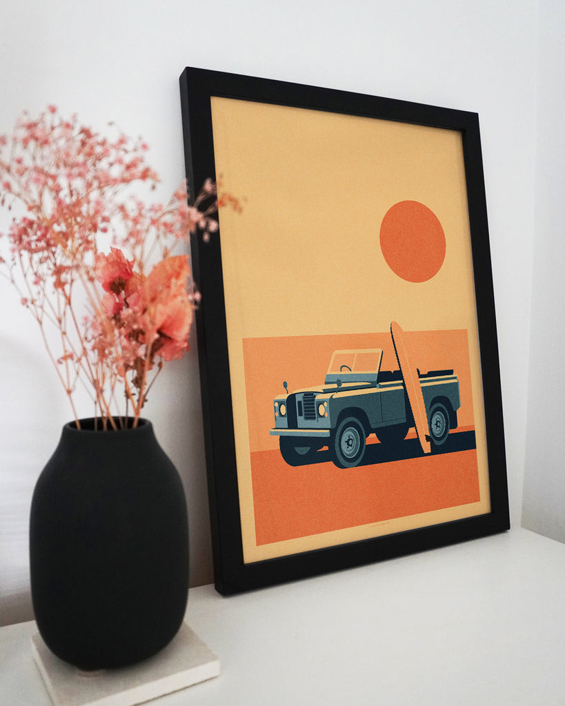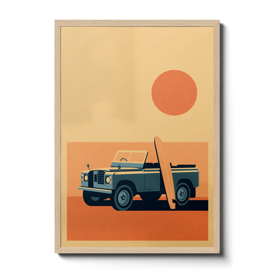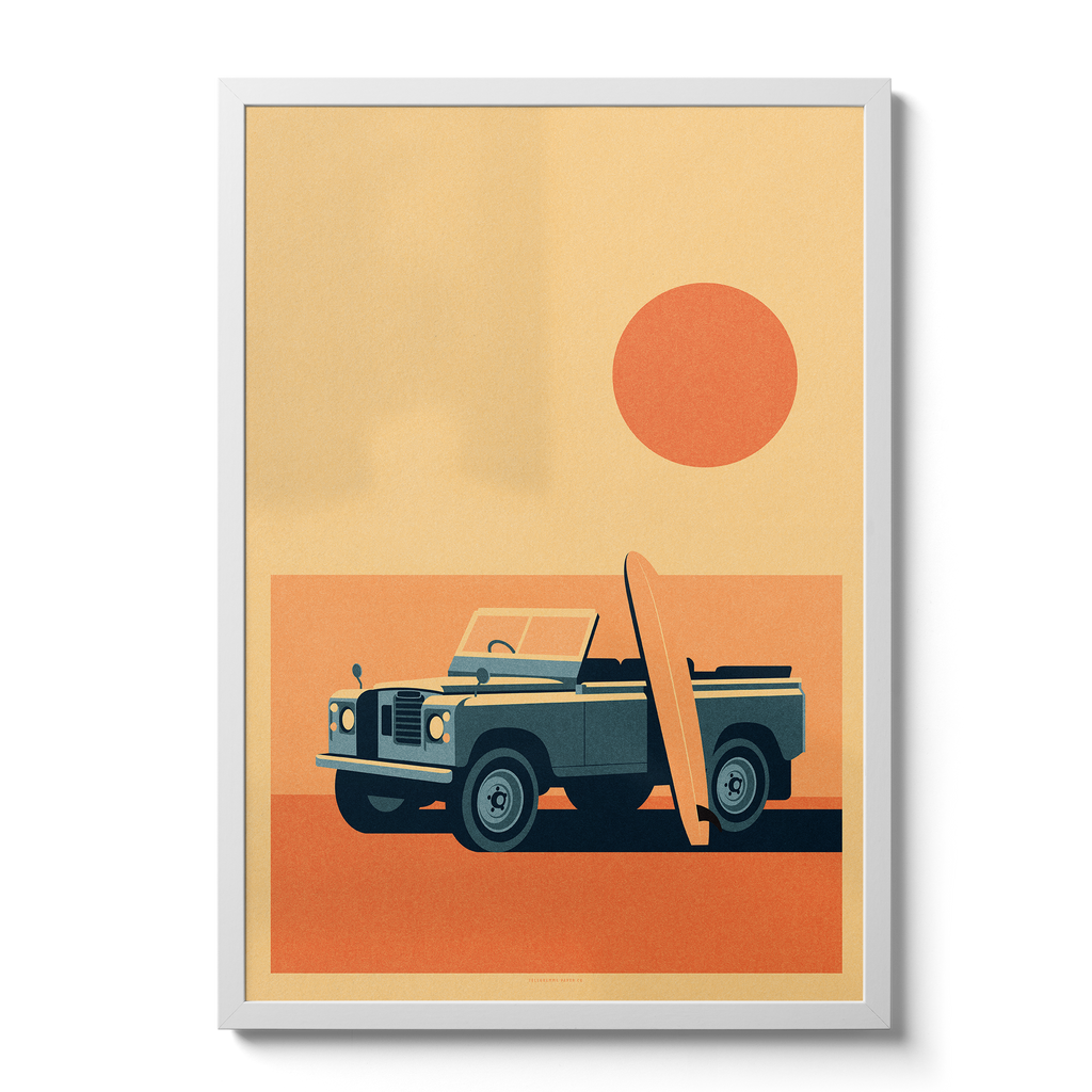 We've paired that feeling of salty air and new adventures with our boys' current favourite cars, a classic Porsche and a rugged Defender. Check out Print No. 33 here. Set in a calming surf spot, these prints are designed to bring a little warmth and stillness into your home as the colder months approach. Designed to sit on their own, or together, this week's prints are for anyone who loves the ocean, the road, and the peaceful moments in between.