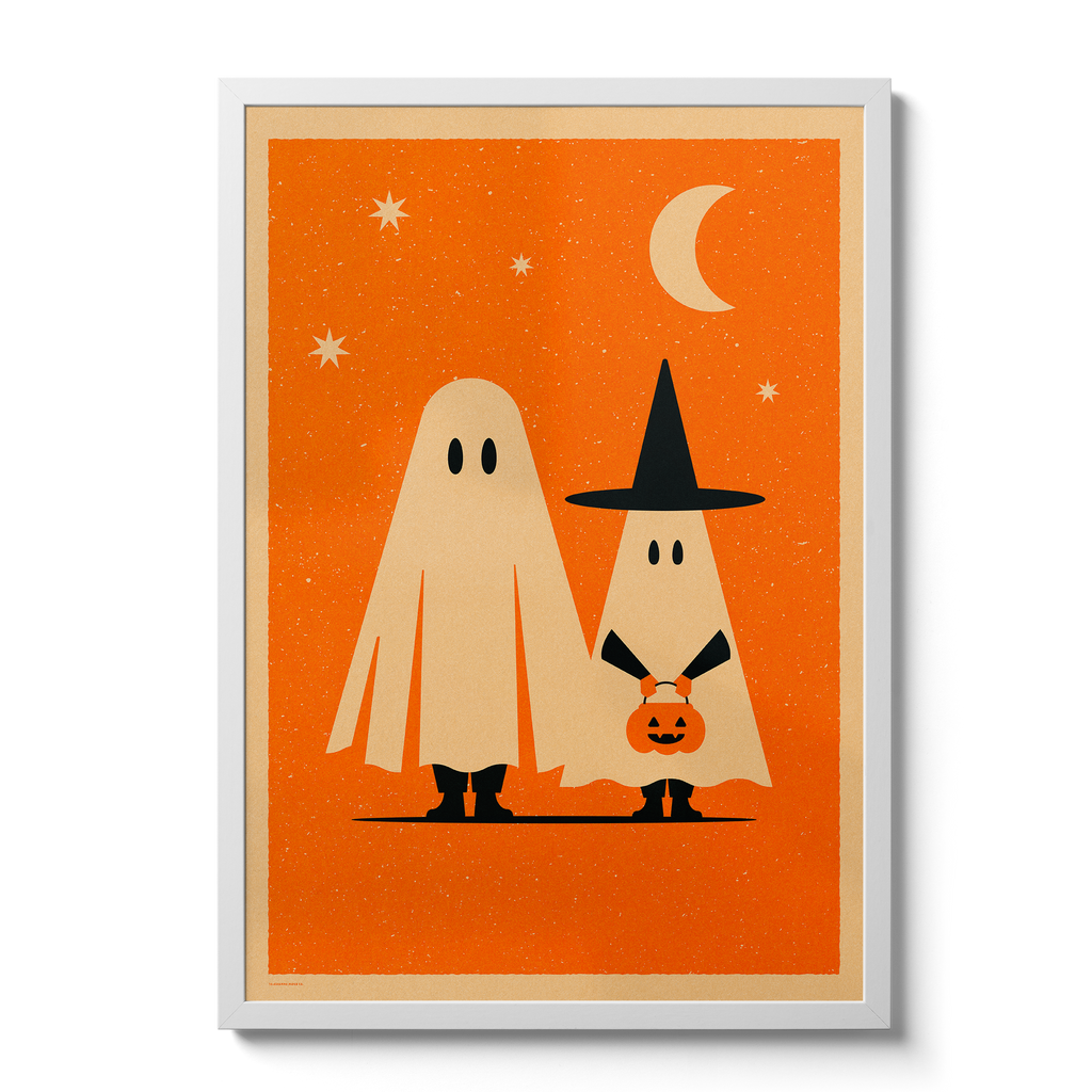 This week's print is inspired by the change of season and, not so surprisingly, Halloween! We love celebrating Halloween and all (kid-friendly) spooky things with our young boys. They both love to dress up and usually our eldest son wants to dress as a ghost - you can't go wrong with a classic! So this week's print is inspired by their love of spooky dressing and more importantly, the most exciting part of all - trick or treating!