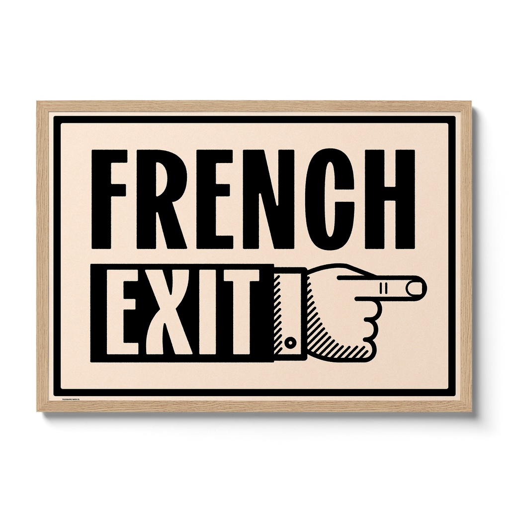 Last week’s print was inspired by a new piece for our son’s bedroom, and this week’s creation is all about our hallway! We recently transformed it into a long gallery space, but we were still missing that one perfect print for the opposite wall. While we don’t often pull off a cheeky French Exit ourselves, we thought it would be a hilarious and fun addition to the collection. Sometimes, though, it’s just gotta be done, right?