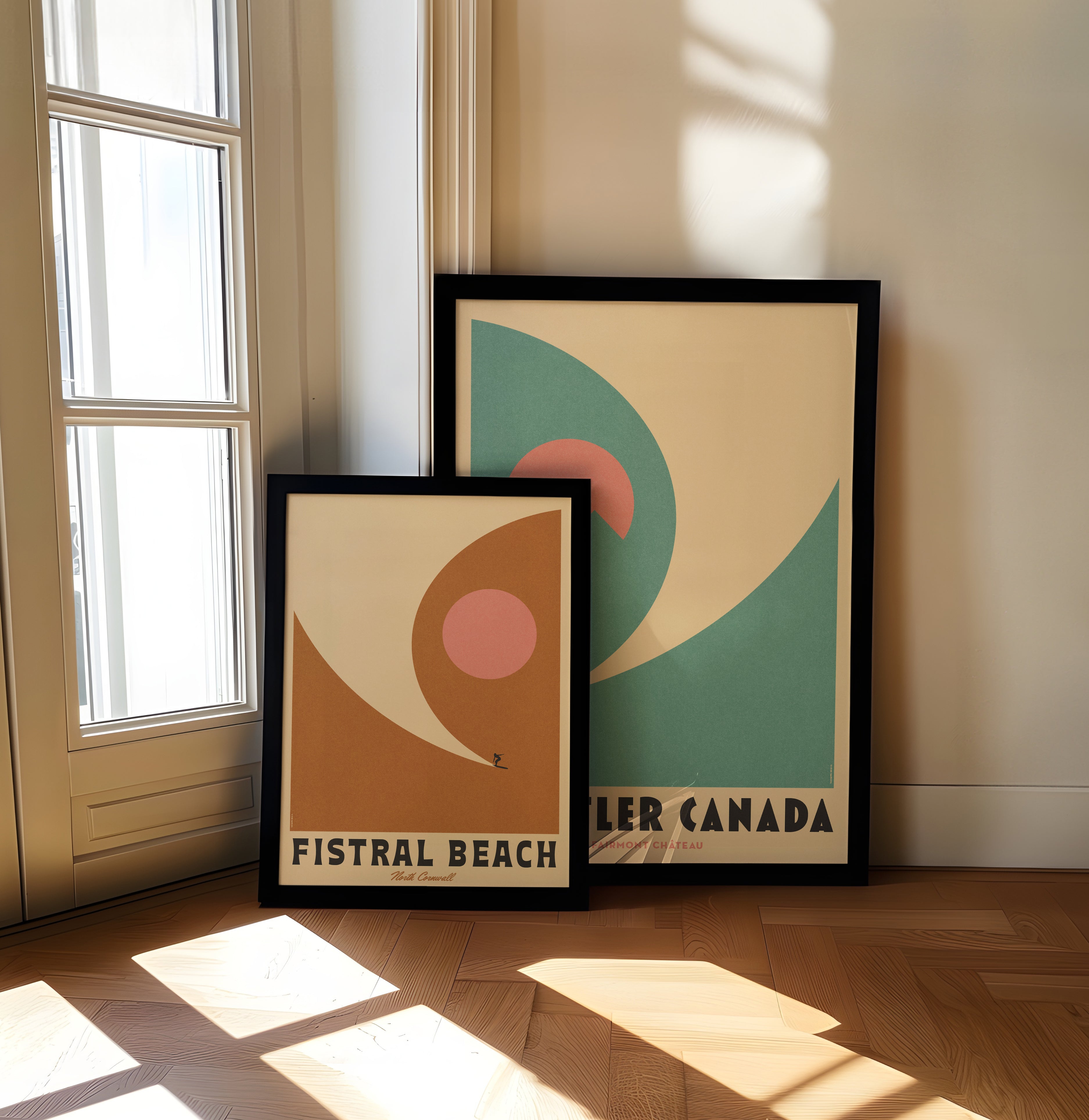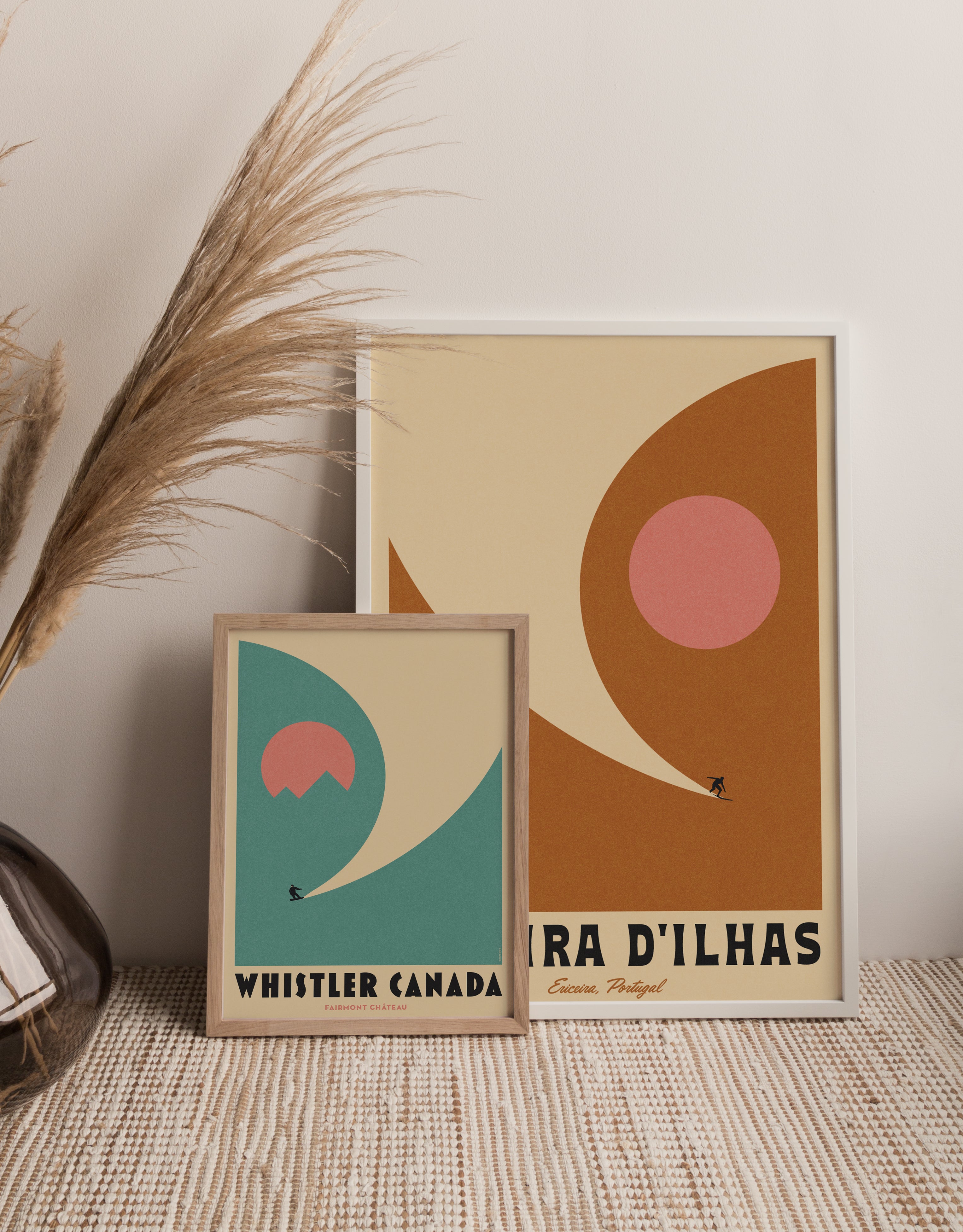 We decided to create the 2 prints together because we often like to design in pairs of sets of 3 and we think these look great together. The Personalised element is inspired by 2 great friends of ours, one is a skier and one a surfer so we created these to celebrate them.